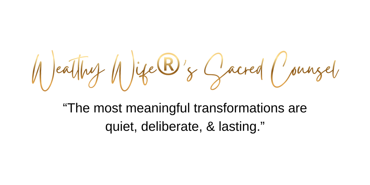 Held within the ecclesiastical protection of Domum Sapientiae™ and expressed through the stewardship of Wealthy Wife® and the Temple of Iconic Femininity™, Sacred Counsel lives as devotional counsel. It is shaped for those who recognize the consequence of clear perception and refined inner alignment.